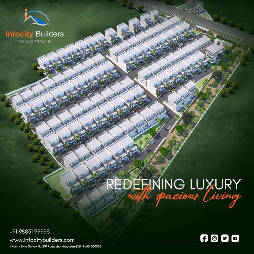 Searching for villas in Patancheru available for sale in Hyderabad leads investors to The Infocity Villas for their ideal investment. This area provides outstanding convenience as well as connectivity because it features simple access to all necessary daily amenities including educational facilities, medical facilities shopping centers, and Information Technology centers. The superior infrastructure development together with increasing real estate worth positions the area as an exceptional residential choice for everyone.